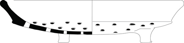 | 4b | bolle lekschaal met scherpe knik bodem-wand, uitstaande wand met afgeronde rand, poten |