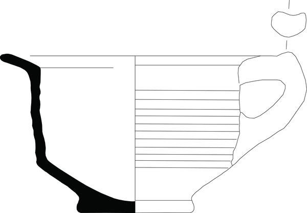 | 4b | wijde pispot met knik bodem-wand naar vrijwel cilindrische buik, vrijwel horizontaal geknikte, platte rand, standvoet |