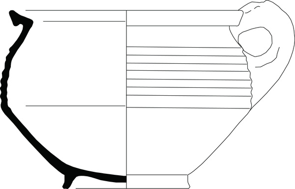 | 4b | pispot met scherpe buik- en halsknik en kraagrand, standring |