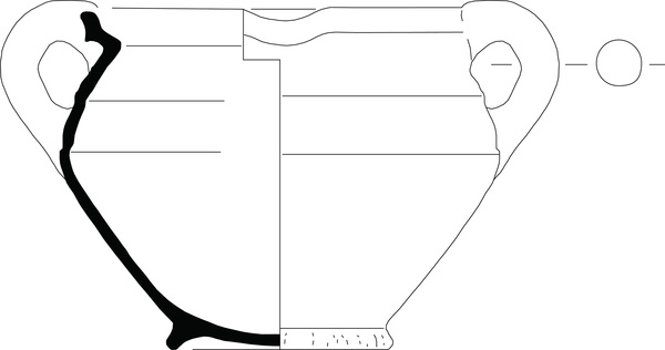 | 4b | pot met buikknik met ribbel en ribbel op schouder, kraagrand met dekselgeul, standring |