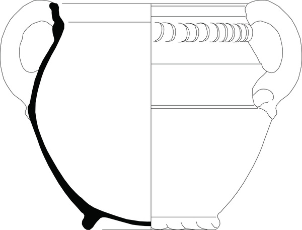 | 4b | pot met afgeronde buikknik en kraagrand met dekselgeul, standring |