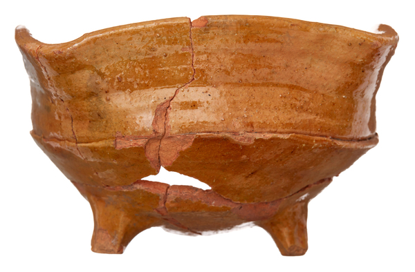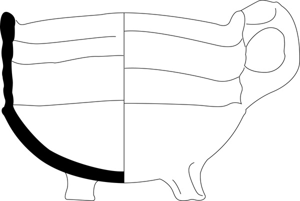 | 4b | vierkante vuurtest met scherpe knik bodem-wand en iets uitwijkende wand, afgeronde rand, poten |