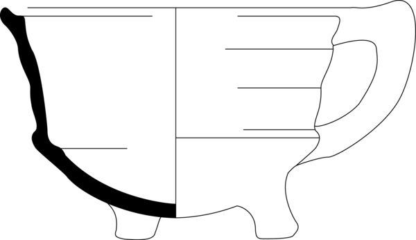 | 4b vorm | ronde vuurtest met scherpe knik bodem-wand en rand met aan bovenzijde een geultje, poten |