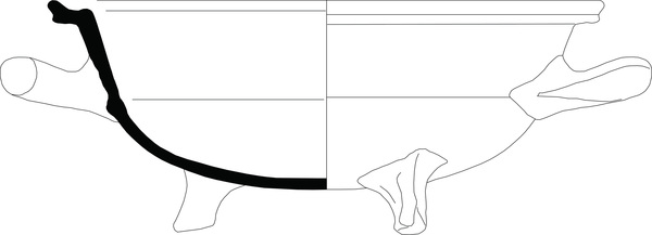 | 4b | grote ronde test/ kooltjespan met knik bodem-wand, naar buiten geknikte rand aan de buitenzijde afgeplat, poten |
