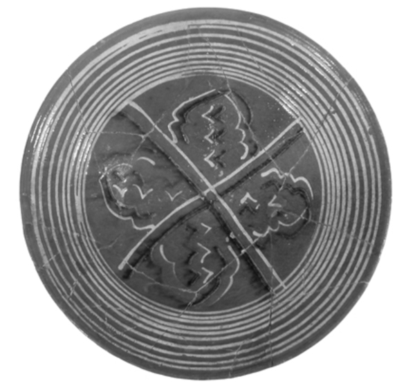 | 5c decoratie | inwendig: slibversiering in geel en groen |