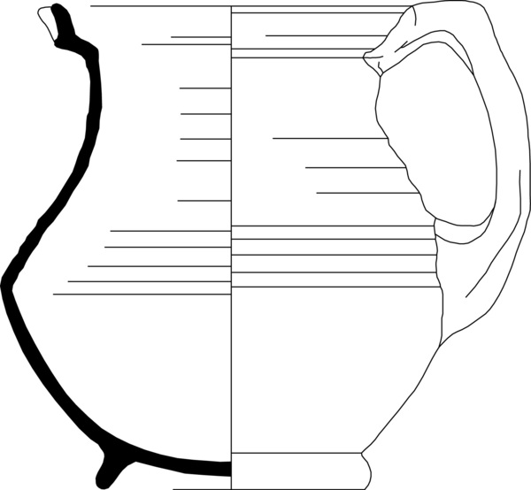 | 4b | kan met scherpe buikknik, ribbel op schouder, kraagrand met dekselgeul, standring |
