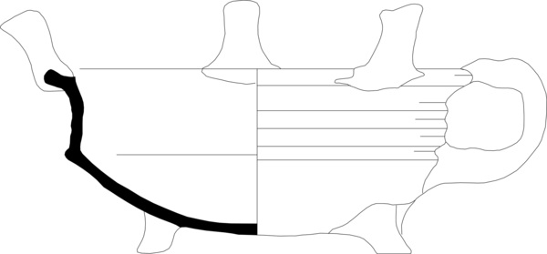| 4b | komfoor met scherpe knik bodem-wand en opstaande nokken op de rand, poten |