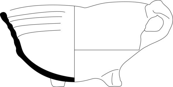 | 4b | vierkante vuurtest met knik bodem-wand en rechte rand, poten |