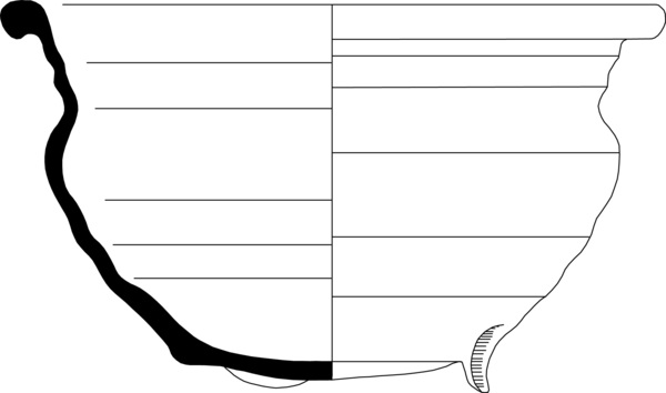 | 4b | bolle kom met ingesnoerde hals en verdikte rand, lensbodem met lobvoeten |