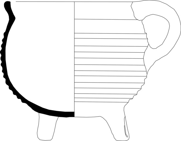 | 4b | bolle grape met korte uitstaande afgeronde rand, bolle bodem met poten |