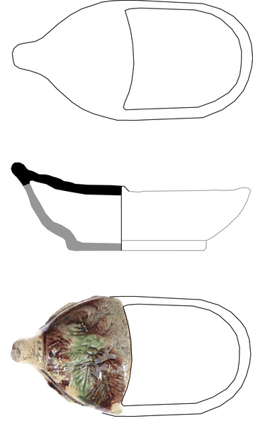 | 4b | wierookbootje met één dichte zijde met reliëfdecoratie en één open zijde, standvlak |