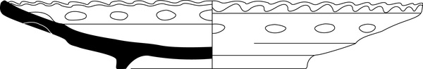| 4b | bord met brede vlag met holle noppen en gekartelde rand, standring |
