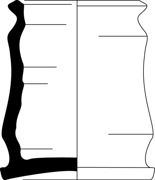 | 4b vorm | hoge, smalle zalfpot met ingesnoerde bodem en hals met uitgebogen rand, standvlak |