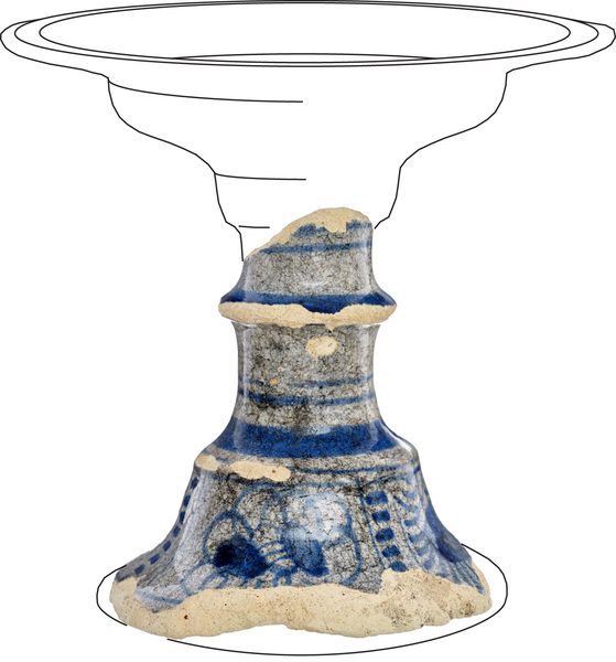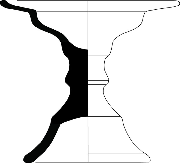 | 4b | zoutvat met s-vormige overgang spiegel-vlag en afgeplatte rand met opstaande lip, op stam met hoge conische standvoet |
