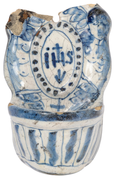 | 4b vorm | wijwatervaatje met plooiwand en met reliëf versierde achterplaat |