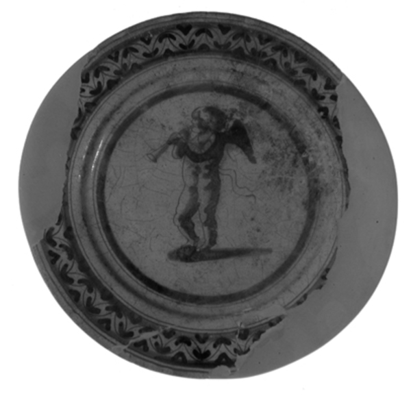 | 5c | vlag: fries van gestyleerde bloemen; spiegel: putto met hoorn blauw |