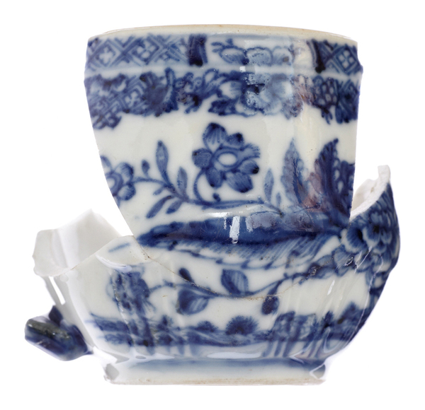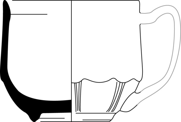 | 4b | vrijwel cilindrische koffiekop met afgeronde knik wand-bodem, onderzijde reliëfwand, inwendig afgeschuinde rand, oor, standring |