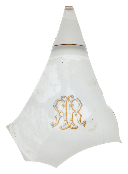| 5c decoratie | monogram: RR (restaurant Riche op Rokin 84) beschildering overglazuur email |