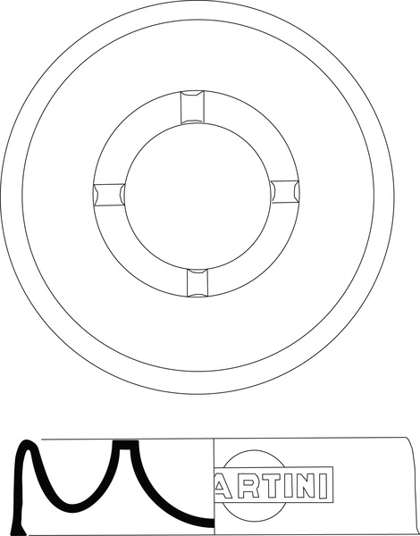 | 4b | ronde asbak met twee verdiepte zones, gescheiden door een platte rand met vier inkepingen om een sigaret op te leggen |