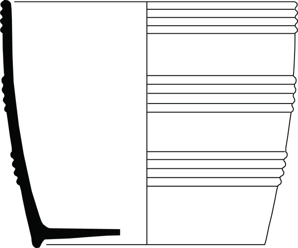 | 4b vorm | ondiepe bloempot met horizontale ribbels, standring |