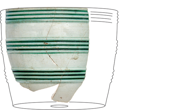 | 4b | ondiepe bloempot met horizontale ribbels, standring |
