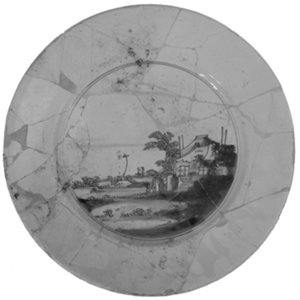 | 5c | spiegel: landschap met boerderij en hooiberg inwendig: blauw |