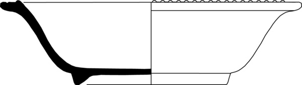 | 4b vorm | wijde kom met uitgebogen rand met reliëf versiering, standring |