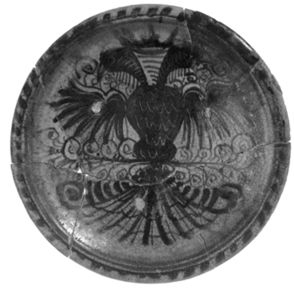| 5c | spiegel: dubbelkoppige adelaar in blauw en geel inwendig: polychroom |