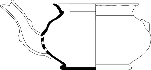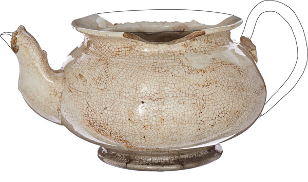 | 4b | bolle theepot met naar buiten geknikte rand, geprofileerde tuit, standring |