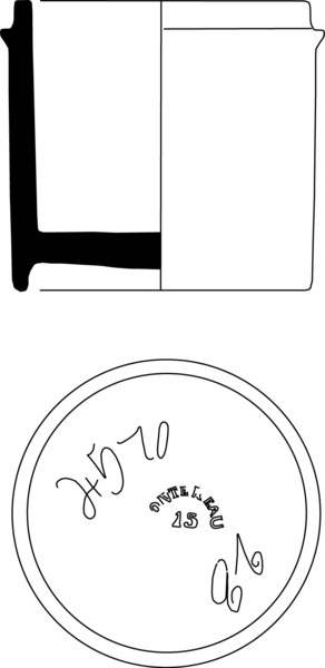 | 4b | lage, cilindrische zalfpot met versmalde opstaande rand (sluitrand), standring |