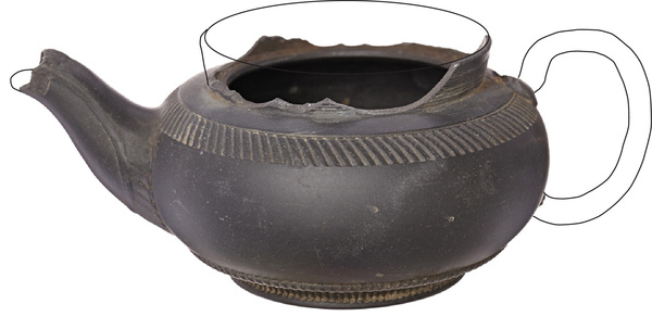 | 4b | lage bolle theepot met naar buiten geknikte rand met dekselgeul, standring |