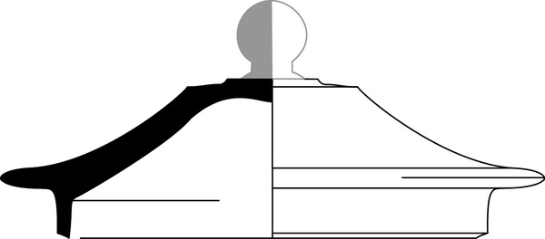 | 4b vorm | bol deksel met platte horizontale rand, sluitrand en knop |