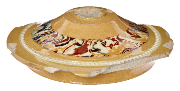 | 5c decoratie | parelrand, band gemarmerd, yellow ware |