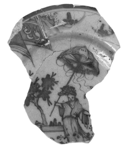 | 5c | vlag: chinese motieven; spiegel: dame met parasol in tuin |