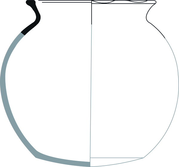 | 4b vorm | bolle pot met uitstaande, gegolfde rand, lensbodem |