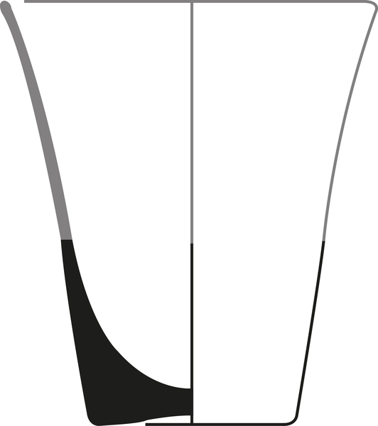 | 4b | cilindrische bovenaan uitlopende (a) of cilindrische (b) beker, ook met verdikte bodem licht opgestoken standvlak of standring |