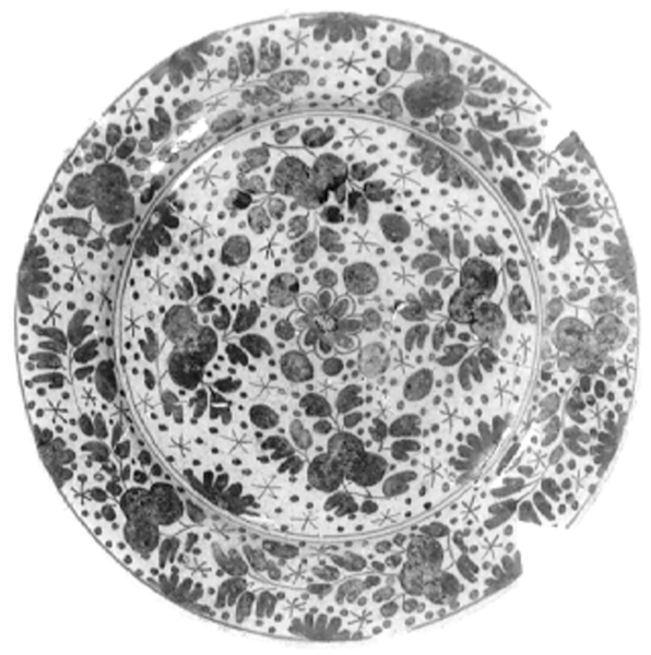 | 5c decoratie | inwendig: blauw op wit; geheel overdekt met strooibloemen blauw |