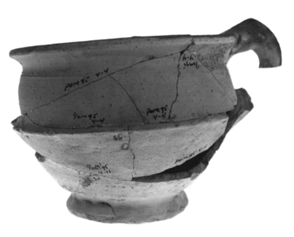 | 4b | bolle pot met scherpe buikknik en uitstaande, aan binnenzijde schuin afgeplatte rand, standring |