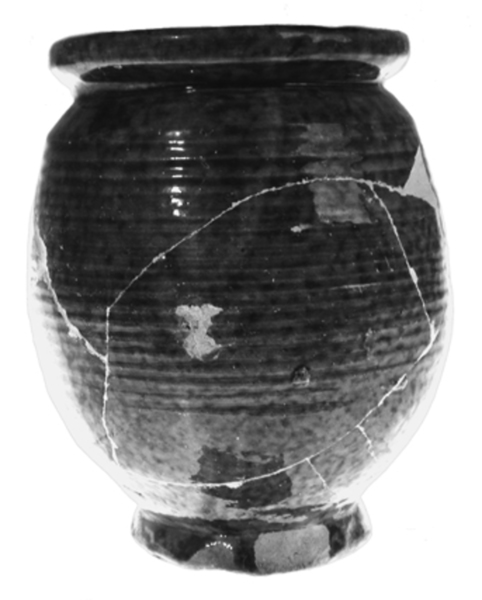 | 4b | hoge bolle pot met kraagrand met dekselgeul, standring |