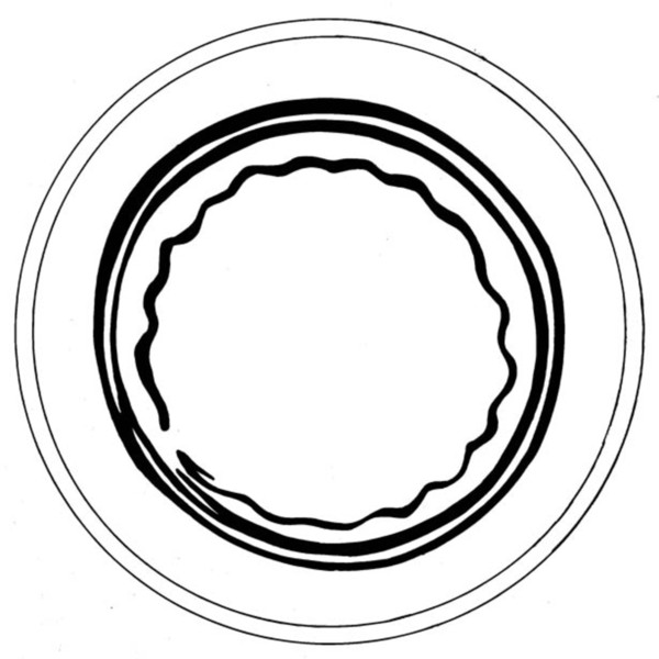 | 5c | rand: ongeglazuurd wit, vlag: dubbele, concentrische cirkel met daaronder een golflijn inwendig slib |