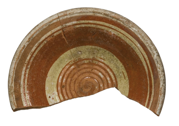 | 5c | rand: ongeglazuurd wit, vlag: dubbele cirkel, spiegel: brede spiraalvormig opgezette cirkel inwendig slib |