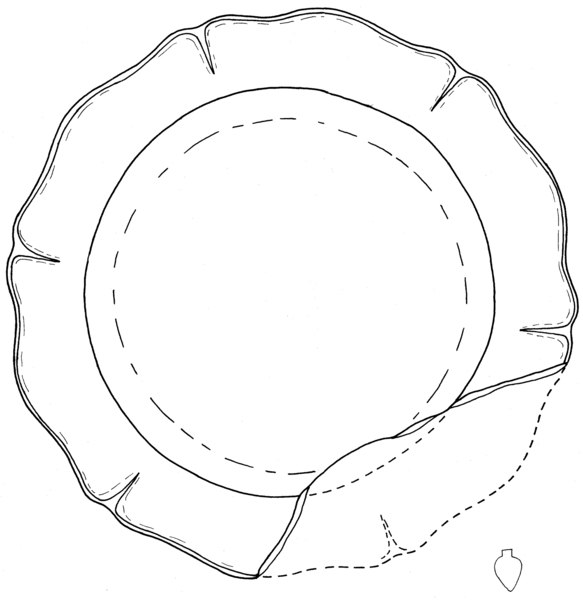 | 4b | ondiep bord, vlag met reliëf versiering, knik van spiegel naar vlag, standring |