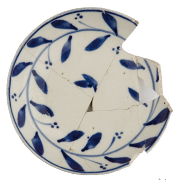 | 5c | robuuste uitvoering, inwendig: onder rand filet, halverwege vlag filet die als tak wordt beschoud waaraan bladeren ontspringen en zijtakken met drie besjes, op spiegel twee blaadjes blauw |