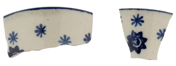 | 5c decoratie | uitwendig: blauw filet daaronder achtpuntige sterretjes en sterretjes die opgebouwd zijn uit vier streepjes blauw |