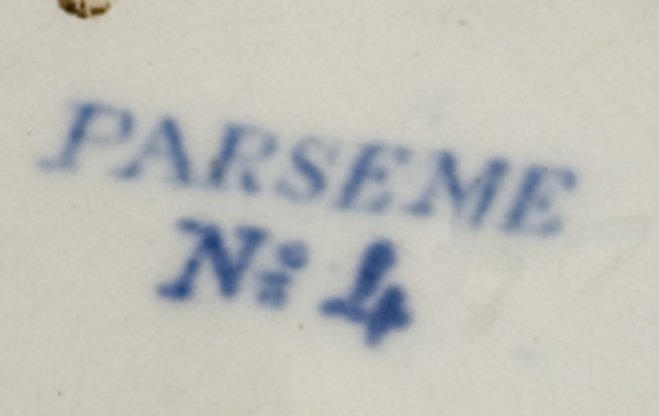 | 5d | Decornaam: Parseme nr. 4. Beeldmerk: Parseme No 4 en cijfer 4. Signatuur 1185. |