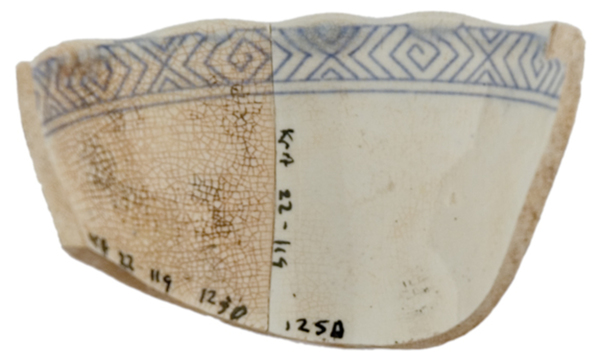 | 5c | golfrand, inwendig: geometrische versiering, uitwendig: zelfde versiering als binnenkant, daaronder panelen met bloemen blauw |