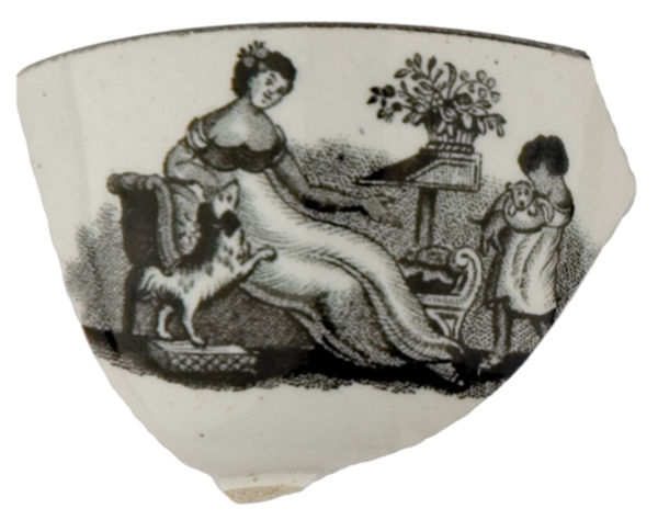 | 5c decoratie | inwendig: halvewege wand zwarte rand en filet; uitwendig: onder zwarte rand vrouw of sofa met kind er naast. inwendig: zwart; uitwendig: zwart |