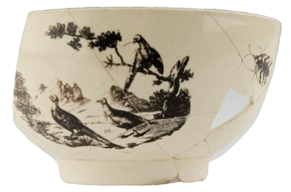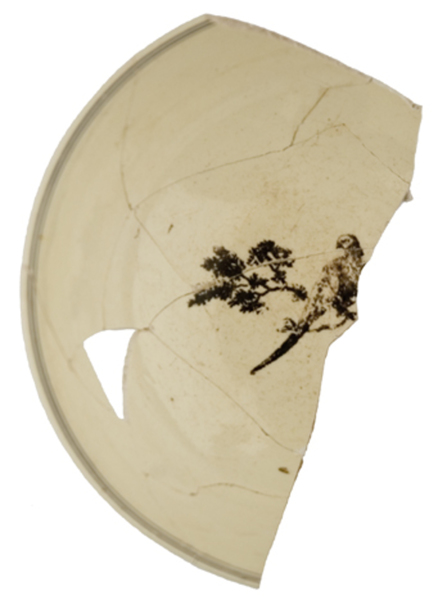 | 5c | inwendig: onder rand dubbel filet, op bodem fazant in boom, uitwendig: tweemaal een landschap waarvan één met fazanten, een insect tussen beide afbeeldingen zwart |