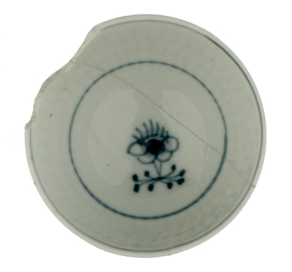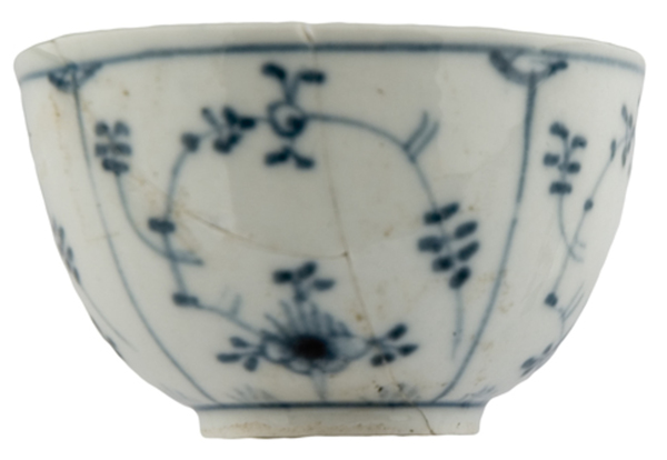 | 5c | inwendig: onder rand filet. geribd met verspringing halverwege de wand, op bodem cirkel met strobloem; uitwendig: strobloemdecor inwendig: blauw; uitwendig: blauw |