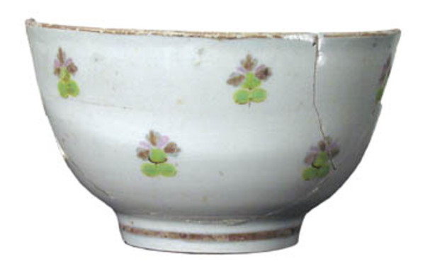 | 5c decoratie | groen, geel en paars; wand buiten: bloemetjes, bruine rand polychroom |